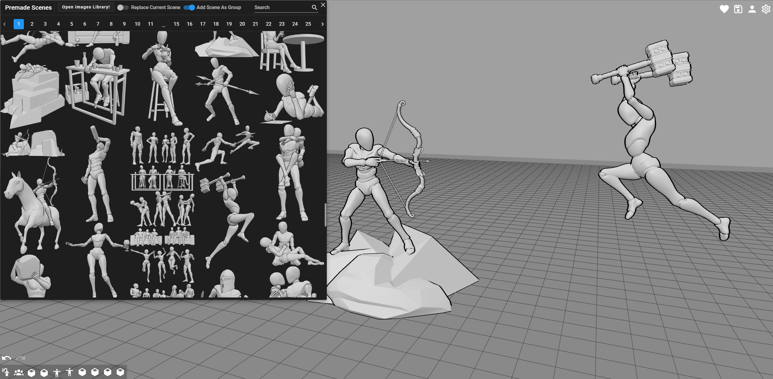 PoseMyArt provides a professionally curated, massive premade library of poses right out of the box: