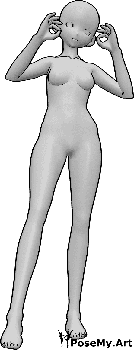 La mujer anime está de pie y hace signos "perfectos" con las manos
