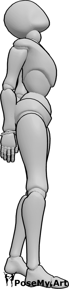 Mujer esposada de pie y mirando hacia arriba, con las manos a la espalda.