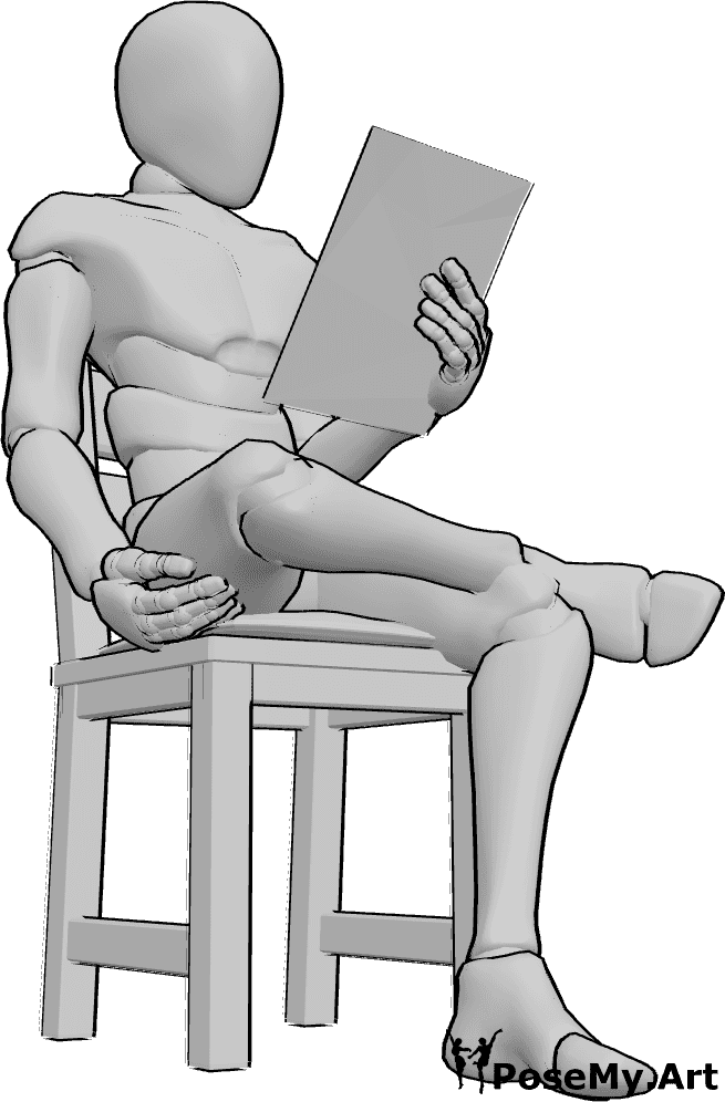 Varón sentado en una silla con un periódico en la mano, leyendo