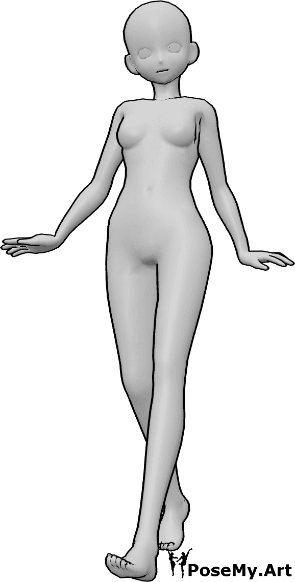 Una linda mujer anime está caminando, mirando ligeramente a la izquierda