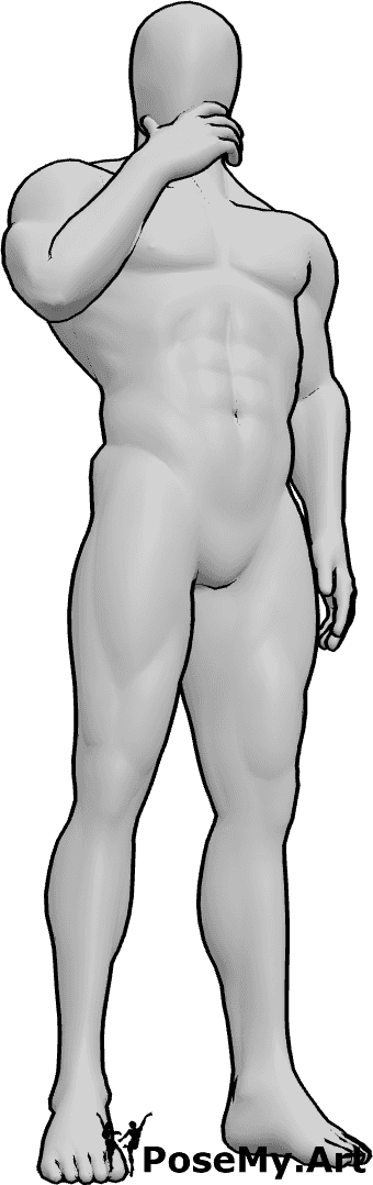 Uomo in piedi in posa pensante